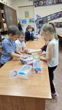 Ребята прошли следующие испытания: Собирали Деда Мороза по схеме, сказочного оленя по памяти.